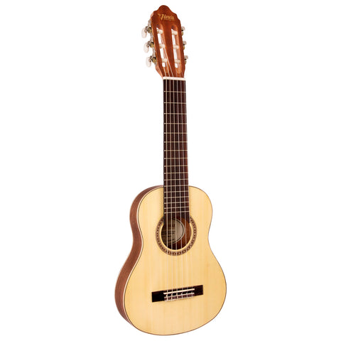A versatile instrument of ultra compact size with nylon strings. It is perfect for guitarists looking for a travel guitar, as well as ukulele players who want to play guitar. With six strings tuned to ADGCEA in standard guitar intervals, the instrument is ideal for extended range ukulele arrangements or for those who want a smaller body guitar.
