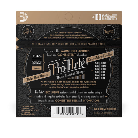 - Las cuerdas de guitarra clásica de nailon D'Addario Pro-Arté vienen con un código en la bolsa VCI reciclable y resellable, que puedes registrar para ganar puntos Players Circle.