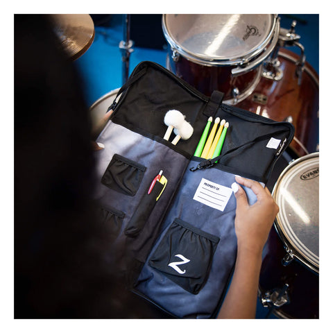 Una funda para baquetas duradera y funcional, diseñada específicamente para estudiantes de percusión. Perfecta para ir a la escuela, a clases o a practicar.