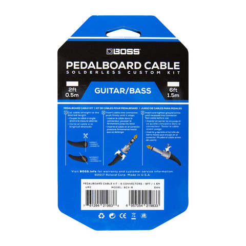 El kit de cables BOSS sin soldadura para pedaleras está diseñado para ahorrar espacio en tu pedalera sin sacrificar el sonido. Fácil de montar, este sistema personalizable solo requiere apretar un tornillo de tierra en cada conector, sin necesidad de pelar cables. Nuestros conectores bidireccionales compactos están diseñados para permitir conexiones rectas o en ángulo recto, y te permiten colocar los pedales a una distancia de hasta 1 cm.